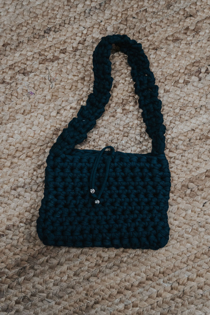This little May bag has a littel tie for security. Perfect little throw on to add a cute look.