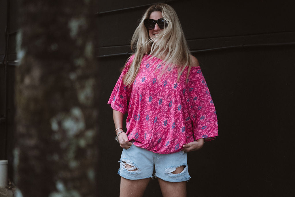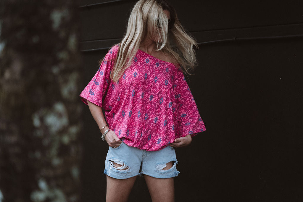 Feel Pretty, Feel Classy with the Molly Top. These tops are oversized so please order a size down if you would like a tighter fit. This is a batwing style.