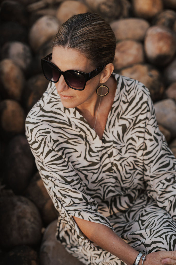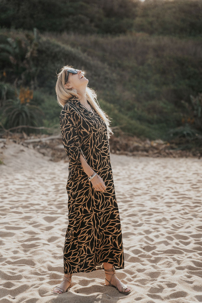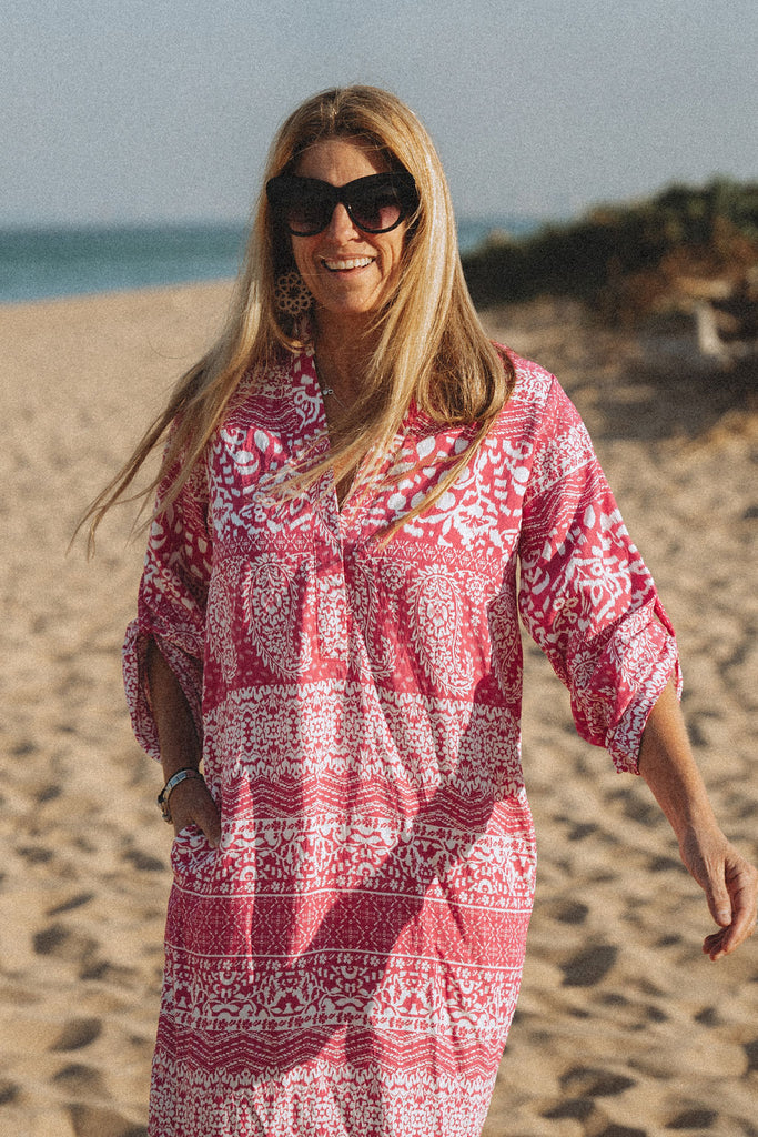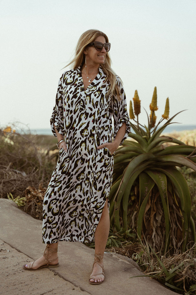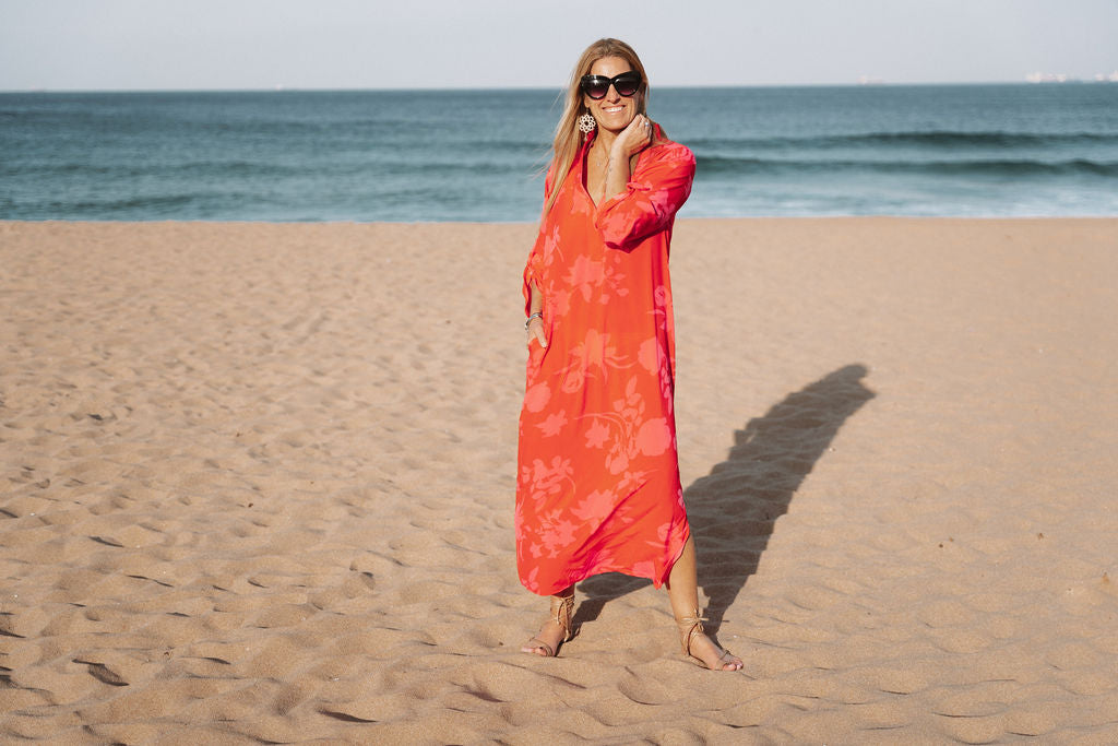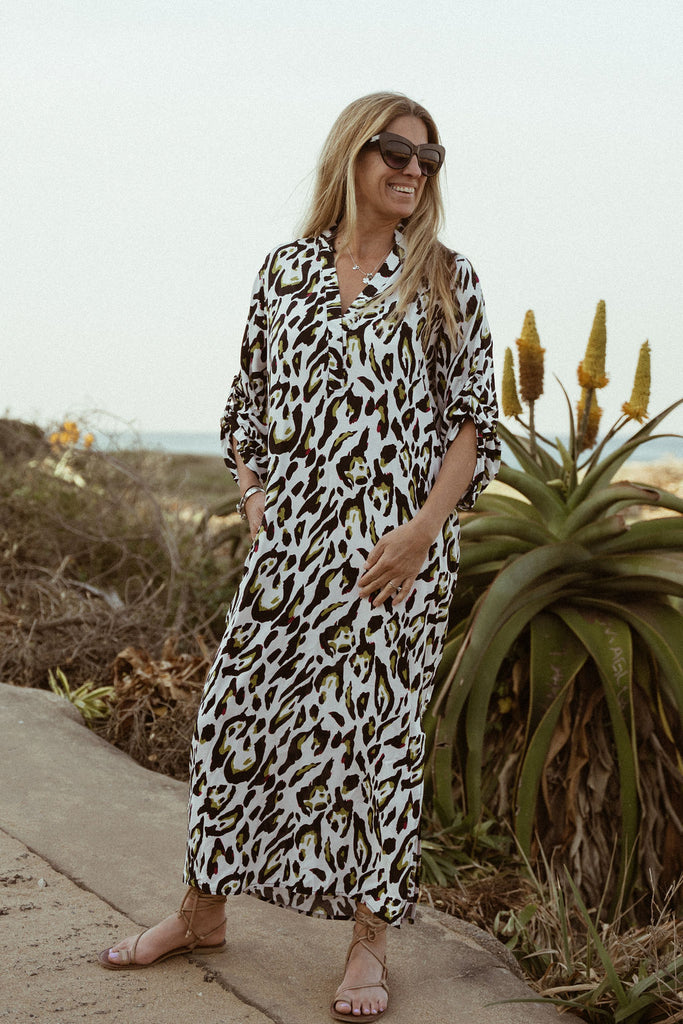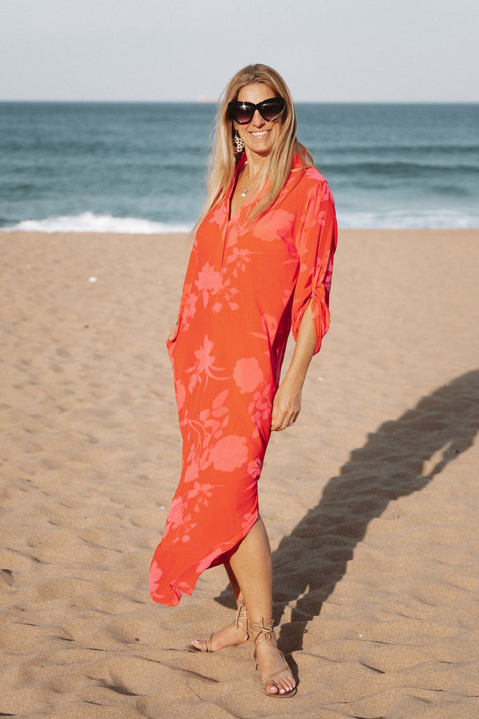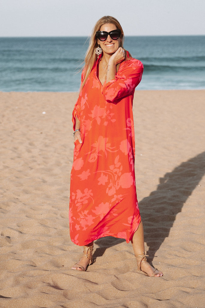 Beautiful Flory dresses with mandarin collar , tab on the sleeves, yoke detail at the back, two side slits and pockets.