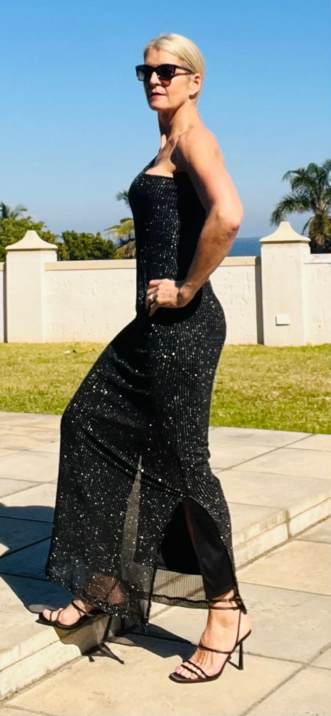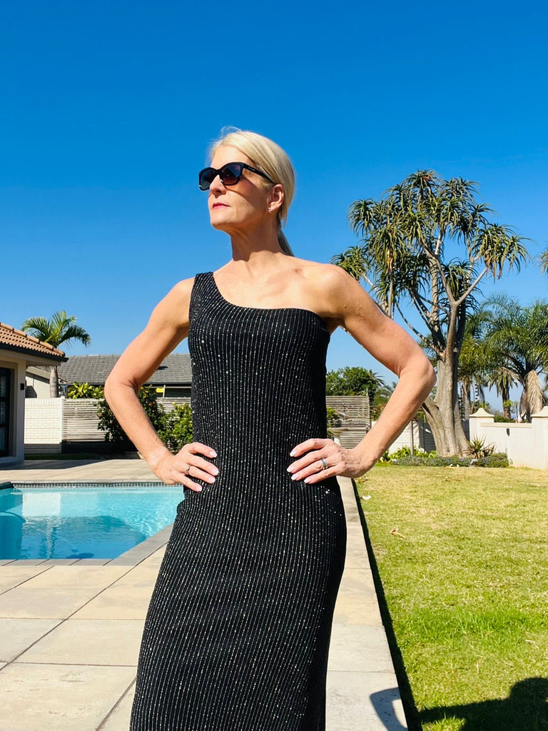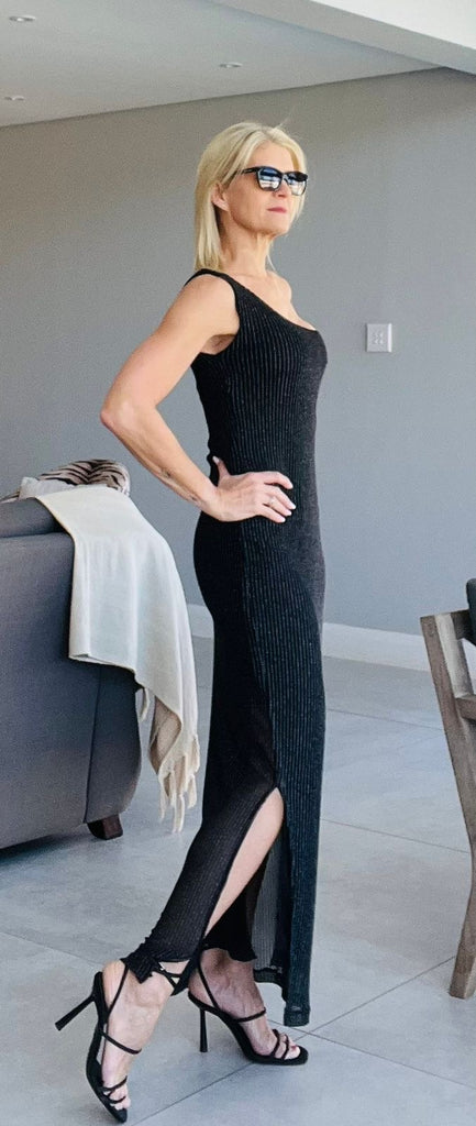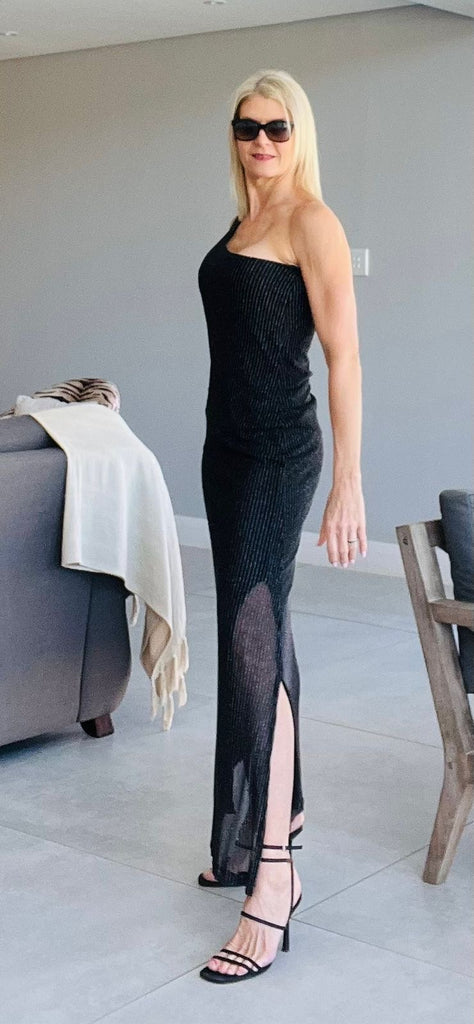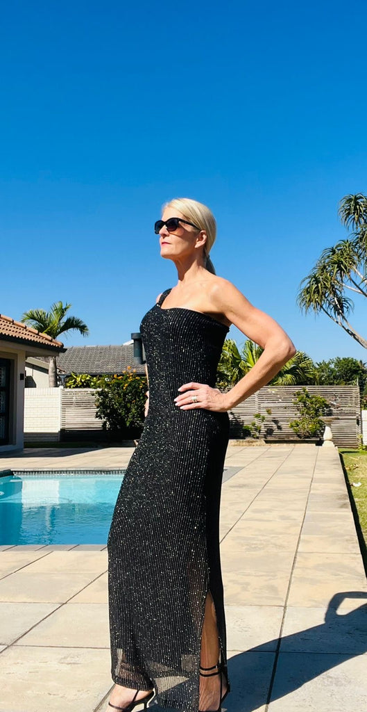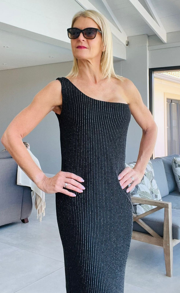 We love this as its just so flattering, going to a wedding or a function, this is your go to dress. This is two dresses in one, bon bon underneath with lurex mesh over.